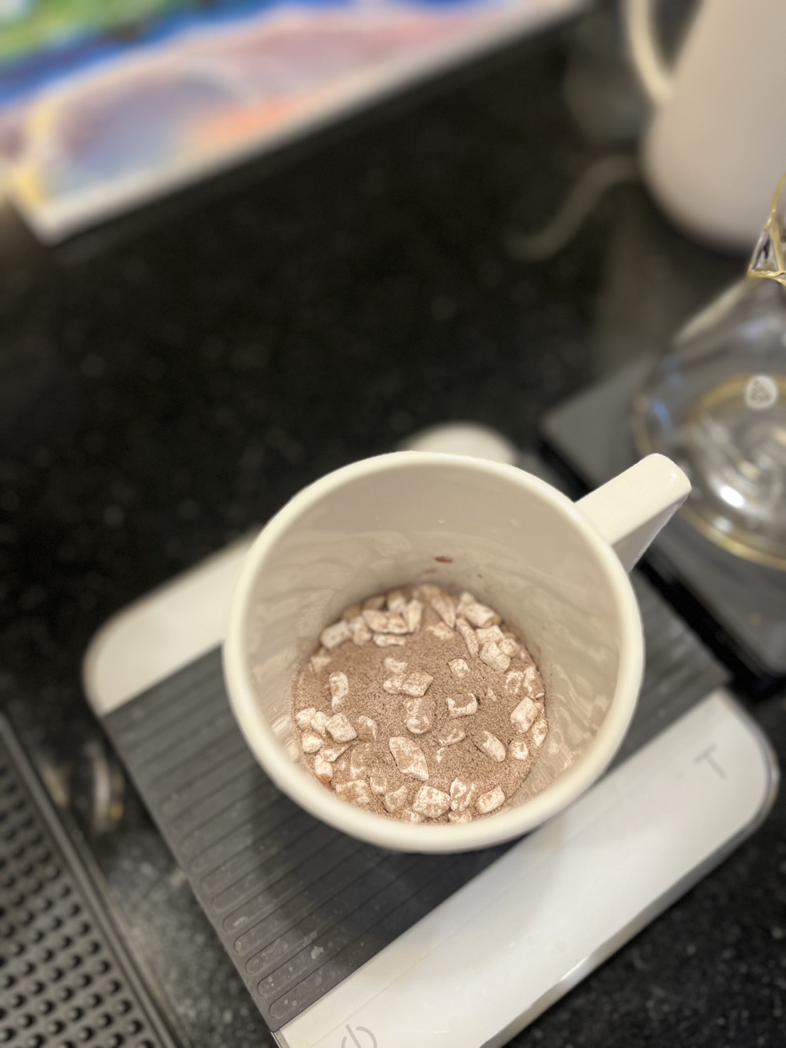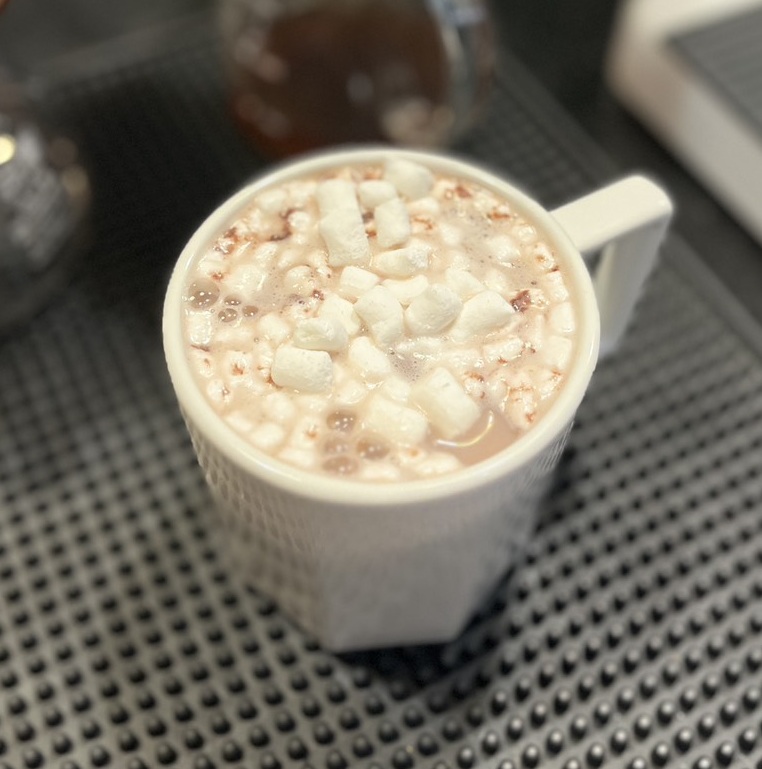 亦可先把棉花糖撈起來放旁邊,等可可牛奶攪拌均勻後再放回去,這樣口感層次會更豐富唷!